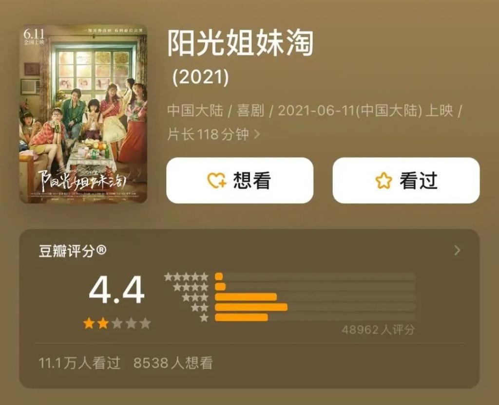 跨语境的叙事隔阂,让剧作层面稍微有一点偏差都会暴露出其创作的粗劣,比如《阳光姐妹淘》里韩国的 " 大姐大文化 " 安放在国内没有创造笑点和温情,反而有些奇怪,最终收获豆瓣 4.4 评分以及不足 1 亿的票房。