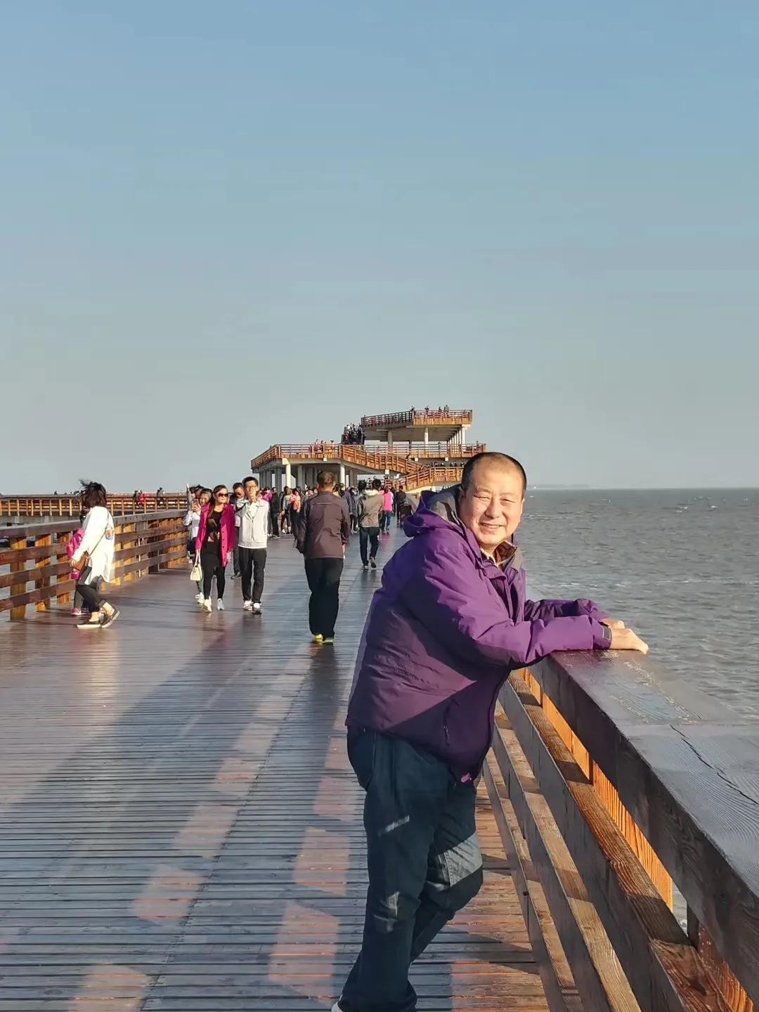 无意间发现辽宁兴城市又有一个新景点,在公路边,有一个通向大海里的栈道,栈道尽头有一个观景台,这是三层楼的观景台。