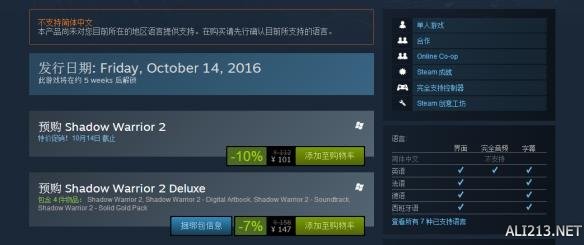 目前游戏已经在Steam上开启的预购,并且普通版和豪华版都针对预购的玩家打折!价格也比较良心。游戏目前是定于今年的10月14号发售,敬请期待。