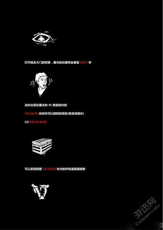 以上就是《黎明杀机》全人物全技能图文翻译了,大家可以试一试组合自己喜欢的技能。