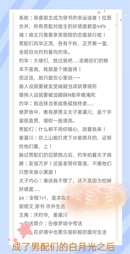 挺好玩的为伪修罗场文(男主明确,男配们依然是男配),话说男主戏份感觉也不是很多的样子,大体是个欢乐多的小甜文。