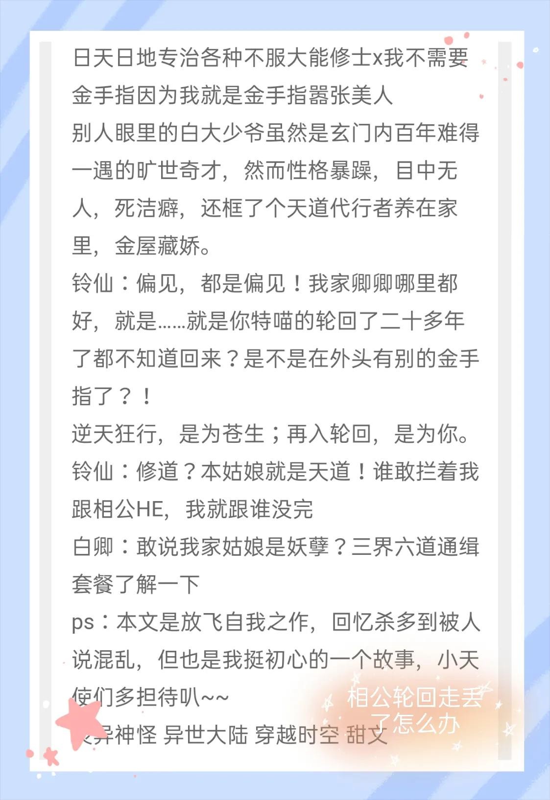 《相公轮回走丢了怎么办》、《穿书女配她只想咸鱼》