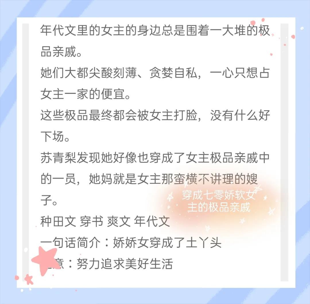 很轻松的爽文,也没有什么狗血桥段,女主因为从末世穿过来所以是大佬(有六到飞起的“大sha四方”的爽文情节)。文很短小所以节奏较快,后面简直都飞起了,如果文写成中长篇感觉会更好。