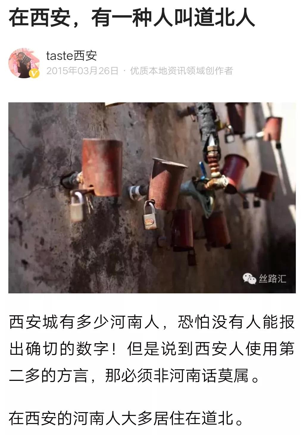 道北人最集中的居住地大约在西安站以北,大明宫遗址一带,河南人逃荒多定居于此,那里的民居建得密密匝匝乱七八糟,是西安市的“贫民窟”。因为离铁路近,那里也住着很多铁路职工,上世纪西安铁路职工的官话就是河南话,原因也在于此。