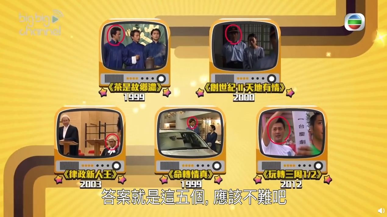 最后公布了结果,五部电视剧,分别是《茶是故乡浓》中饰演的品茶师,《创世纪2天地有情》中的狱警,《律政新人王》中的律师,《命转情真》中的汽车销售员,《玩转三周2/1》等。