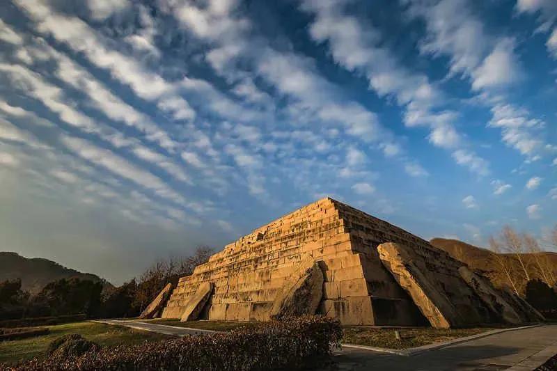 位于吉林省集安市东北约4公里的龙山脚下,因其造形颇似古埃及法老的陵墓,因此被誉为“东方金字塔”,推算为公元四世纪末五世纪初高句丽王朝第二十代王长寿王之陵。整座陵墓呈方坛阶梯式,高13.1米。墓顶面积270平方米,墓底面积997平方米,全部用精琢的花岗岩砌成。坟阶七层,每层由石条铺砌而成,每块条石重达几吨。第五阶有通往墓室的通道,盖棺石板重50多吨,每面三个护坟石各重10余吨,其势宏伟壮观。
