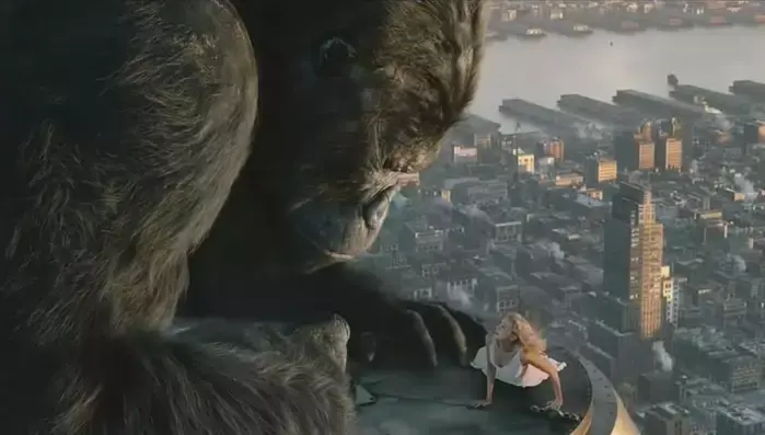 然而2005版的金刚,影片的主题主要是人兽恋,虽说体型稍微小一点,但是这个金刚不论从眼神、行动中来说、都可以看出它对女主的爱!