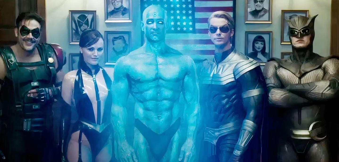 《守望者》是非典型的超级英雄电影,它没有总体上的乐观和理想主义视角,而是向观众呈现了一个反乌托邦世界,冷战紧张局势显著升级,被取缔的超人类是这个新世界的重要组成部分。这是一个关于英雄堕落和一个无望世界的粗糙的替代历史视角。