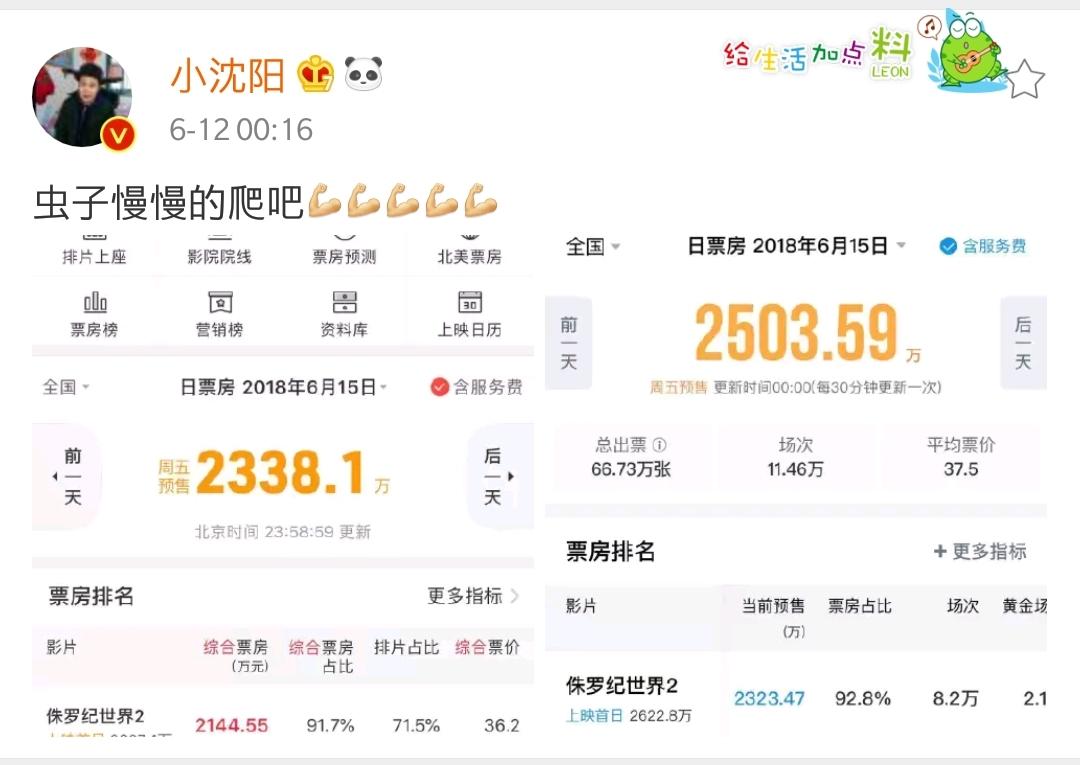 今日凌晨,小沈阳在微博发出了自己电影的预售票房的截图,并符文说:虫子慢慢的爬吧!