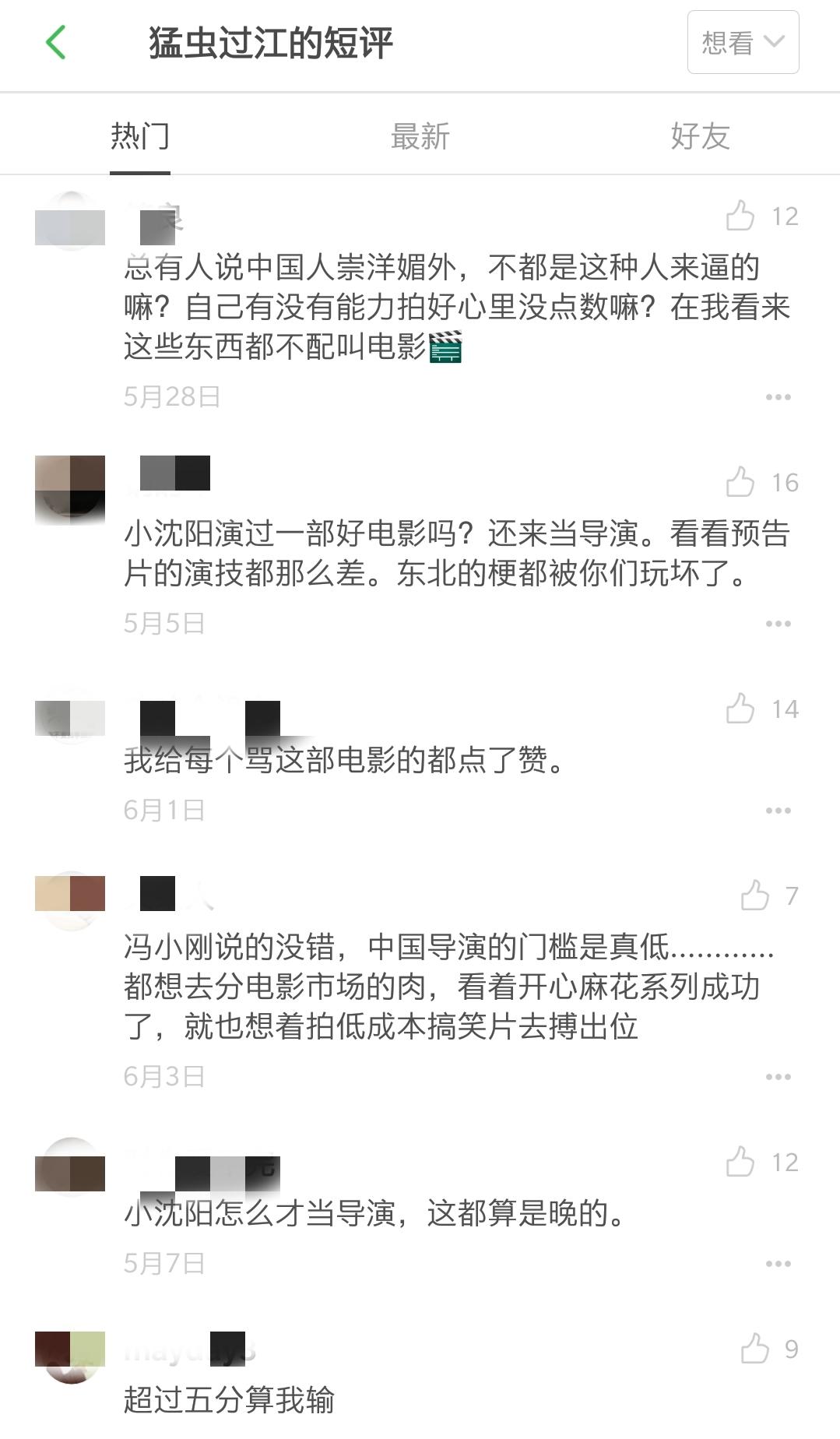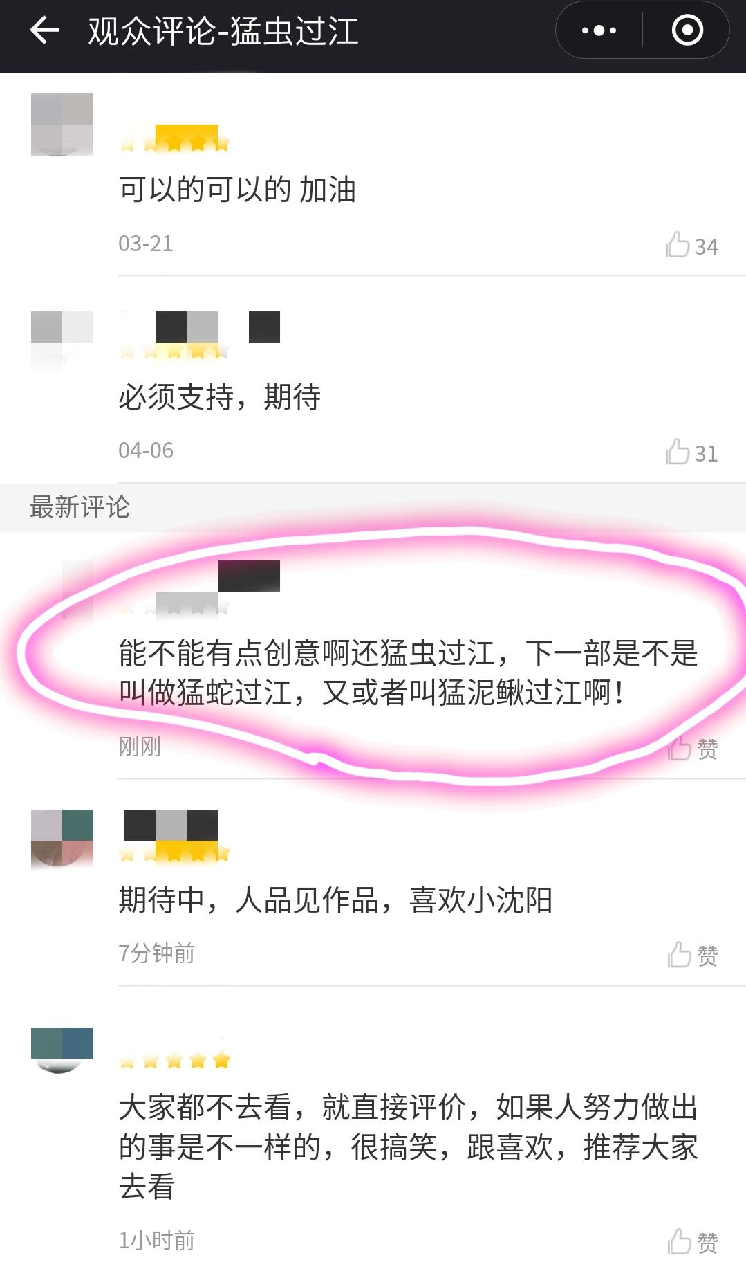 更有搞笑的网友直接评论到:能不能有点创意啊?还《猛虫过江》,下一部是不是就做《猛蛇过江》?又或者叫《猛泥鳅过江》啊?
