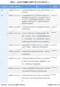 - 【最全】2023年耐火材料产业上市公司全方位对比(附业务布局汇总) ——原标题:【最全】2023年耐火材料产业上市公司全方位对比(附业务布局汇总、业绩对比、业务规划等) 行业主要上...