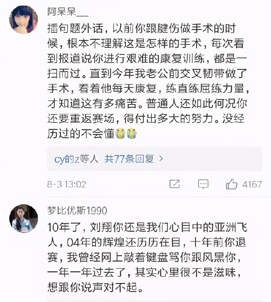 背负十余载骂名的飞人刘翔,如今终得尊重和理解,期待未来依然拥有无限可能和无限精彩。