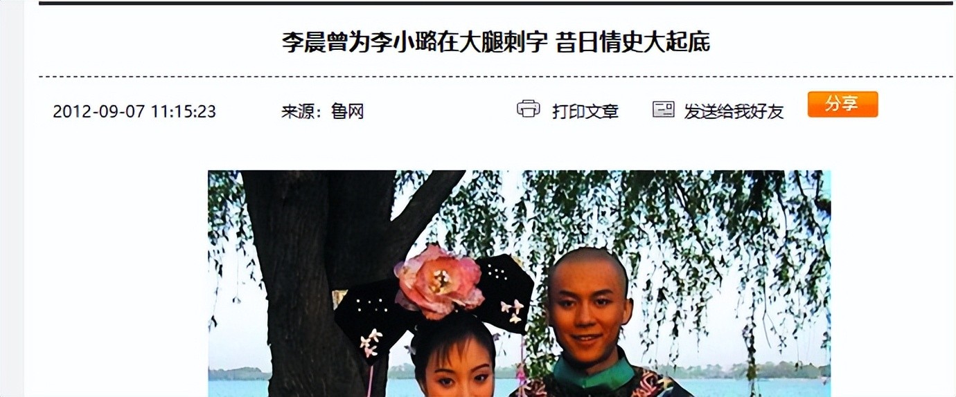根据鲁网的报道,这个事情刊登于2012年9月7日发布的《李晨曾为李小璐在大腿刺字 昔日情史大起底》