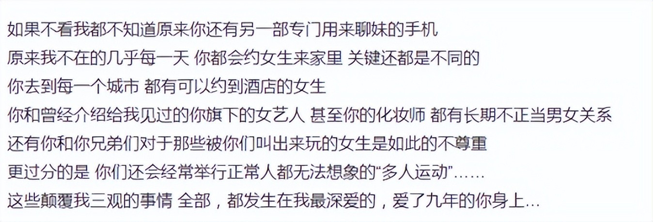 在周扬青不在的时候,他经常背着她四处撩妹,甚至和身边的艺人和化妆师都有不正当的关系。有时候,还会进行“多人运动”。
