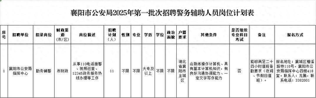 襄阳市公安局公开招聘警务辅助人员公告(2025年度第一批次)