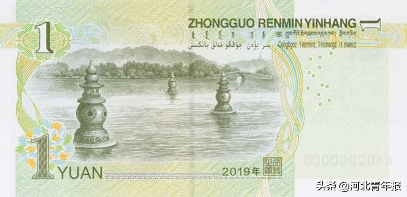 2019年版第五套人民币50元、20元、10元、1元纸币调整正面毛泽东头像、装饰团花、横号码、背面主景和正背面面额数字的样式,增加正面左侧装饰纹样,取消正面右侧凹印手感线和背面右下角局部图案,票面年号改为“2019年”。