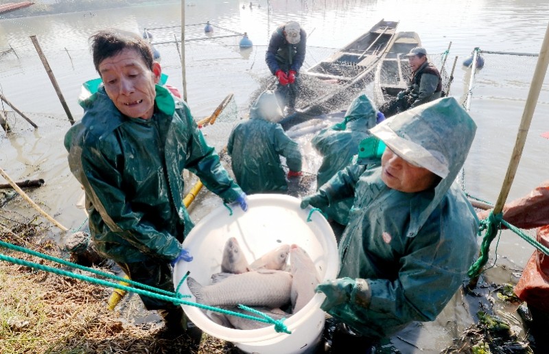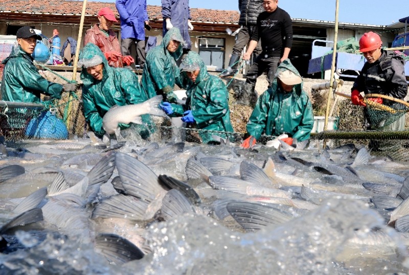 2024年12月17日,在浙江省湖州市德清县洛舍镇东衡村,村民忙着捕获、分类、装运鲜鱼,一派丰收的繁忙景象。当地进入冬季捕鱼季,养殖户抓紧捕捞供应节日市场,丰富百姓餐桌。 新华社发