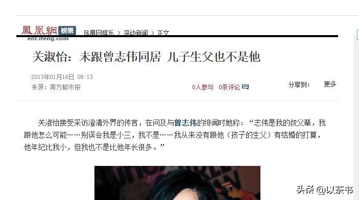 凤凰网娱乐 2013-1-16 关淑怡:未跟曾志伟同居 儿子生父也不是他