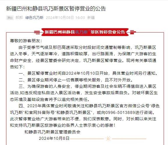 和今年的独库公路说再见!这些景区也进入“冬眠期”→