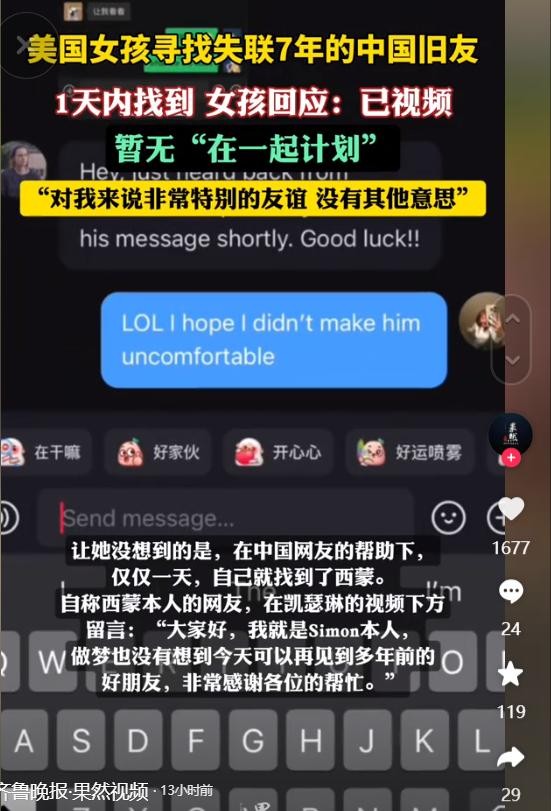 不过,不仅仅是宋祖儿,也有很多网友寻找到了自己的朋友,这位名叫卡特琳娜的女孩,就找到了自己的中国好朋友西蒙。