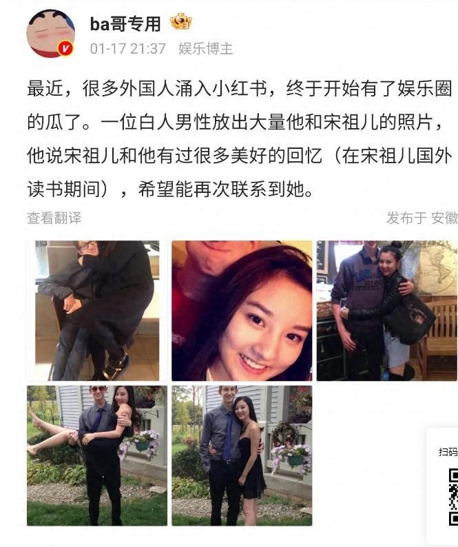 白人男性光明正大寻找宋祖儿,晒大量亲密照片,搂腰抱腿姿势暧昧
