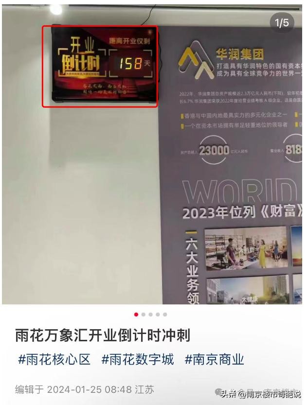 昨天,小红书网友“花雨城南”爆料:雨花万象汇开业倒计时冲刺,距离开业仅剩158天。这么算下来预计开业就在今年6月30日左右。