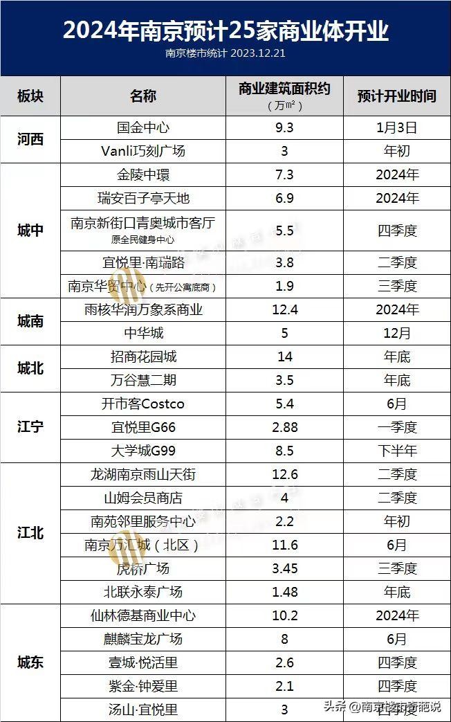 刚刚又有6个重磅新消息来袭,一并分享给大家。2024商业遍地开花,南京商业格局即将迎来大洗牌: