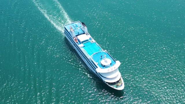 5点回到码头,侨乡号准点起航。坐豪华游轮追一场海上日落,吹着海风很浪漫,船上吃饭价格和地面上一样,可以放心安排。