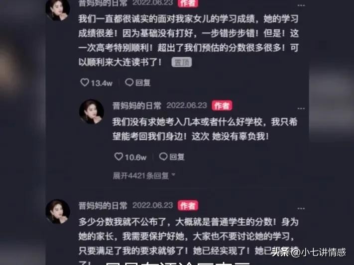 在面对外界议论时,崔晋更是表示,妹妹本来就不是天之骄子,但在自己眼里她真的很棒,没有对不起家人,也没有对不起自己。