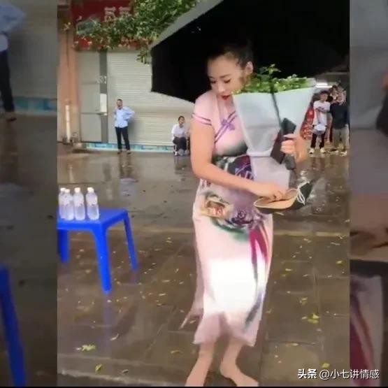 尽管当天下着雨,崔妈还是决定穿着旗袍,手捧向日葵鲜花去接女儿。
