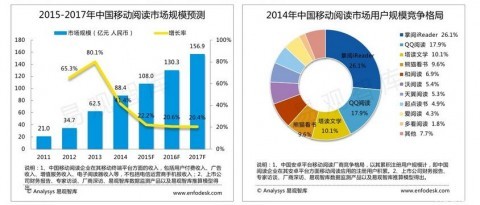 相比传统纸质书阅读,国内移动数字阅读市场预期直至2017年都可实现超过百分之二十的年均增长率,本身两百亿元人民币左右的市场或许并不显眼,但终端用户流量的获得与网络文学IP的拓展,都让整个移动数字领域充满活力。回顾过去的一年,不单掌阅和阅文发展迅猛,连《微信》都将触角伸到了移动数字阅读领域。
