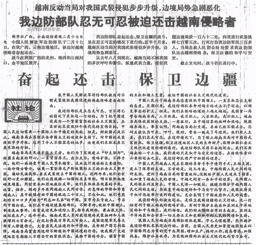 1979年2月17日,新华社奉我国政府之命发布声明称:“越南当局无视中国方面的一再警告,最近连续出动武装部队,侵犯中国领土,袭击中国边防人员和边境居民,局势急剧恶化,严重威胁我国边疆的和平和安全。中国边防部队在忍无可忍的情况下,被迫奋起还击。”