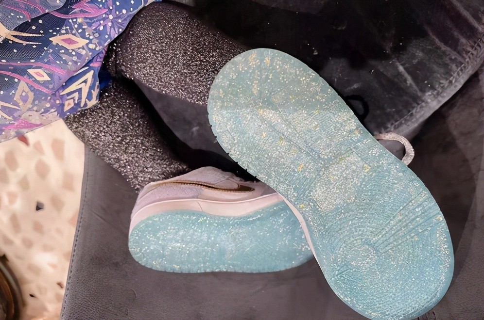 但比起安安的正脸,她脚上的鞋子更加吸睛,某名牌冰雪奇缘系列,蓝色外观精致俏皮。