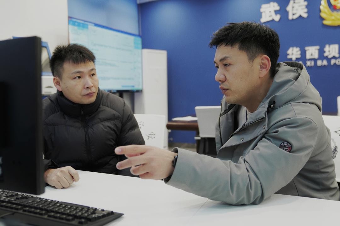就在一天前,分局反诈中心向华西坝派出所推送线索,某电信诈骗案件中的“跑分”犯罪嫌疑人徐某和唐某分别在成都和自贡露面了。当天上午,王天冰带队到成都某酒店将徐某抓获,经过突审获取了唐某在自贡的落脚点,这一信息让大家信心倍增。事不宜迟,王天冰拉上外援谢可乐就往自贡跑,两个多小时的车程里,二人除了商量作战计划,就是嘘寒问暖、互相调侃,毕竟2023年王天冰一直在其他单位轮岗交流,二人已有一整年没有合作,原本匆忙的出差旅程倒给了两个老友叙旧的机会。