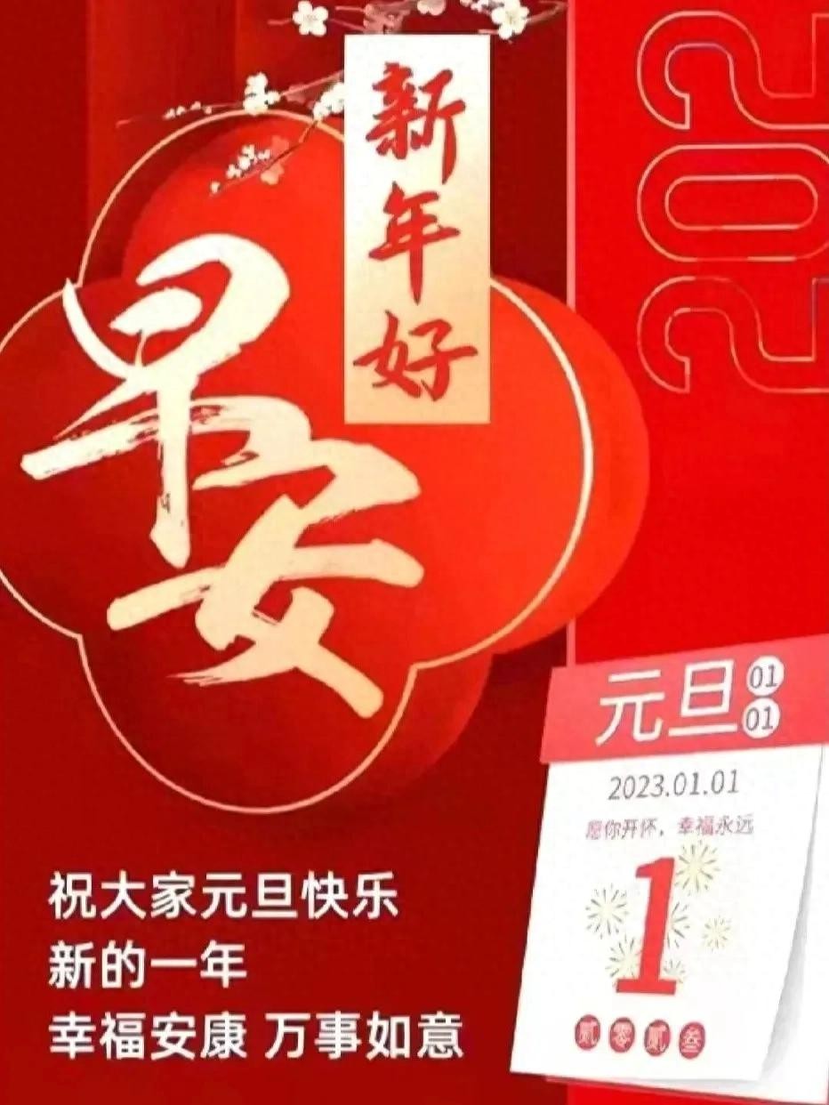 元旦的祝福,愿你拥有美好的一年!愿你的每一天都充满快乐和幸福,愿你的生活充满阳光和温馨。愿你在新的一年里,实现自己的梦想。早安!