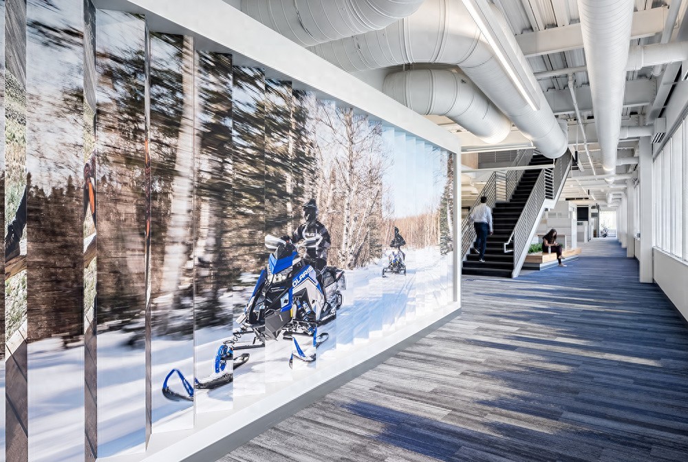 越野赛车顶级制造商北极星公司Polaris,其美国麦地那的总部经过扩建升级改造,在带来更加高效便捷的功能应用时,兼具展示与工作的双重空间属性也为员工提供了一个丰富多元、身心愉悦的协作型办公空间。