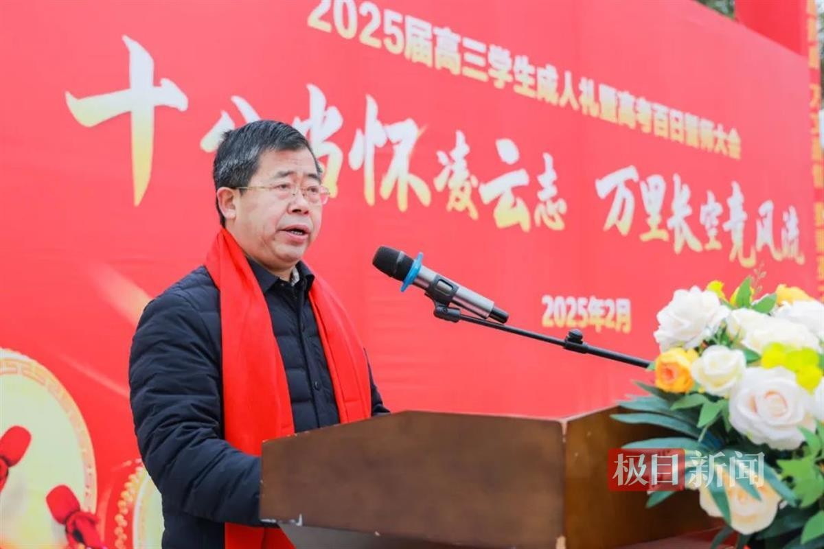 教师代表徐亨老师对全体高三学生发出殷切期望:“同学们,回望过去,我们共同经历了无数个日夜的奋斗与拼搏。在接下来的百日里,我们将继续与你们并肩作战,为你们的高考之路保驾护航。请相信,每一份努力都不会被辜负,每一滴汗水都会化作你们前行的力量。让我们携手共进,共创辉煌!”