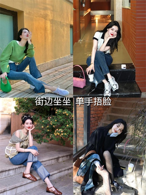 在街边或者步行街等地方,可以尝试侧身坐在路边的台阶或椅子上,一只脚轻轻翘起,手托下巴。这样的姿势既能展现出悠闲自在的感觉,又能让照片显得非常有生活气息。尤其是在街景、建筑作为背景时,更能突出照片的层次感和氛围感。