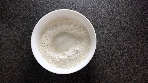 1、先将泡打粉放入面粉中,在中间挖个洞,搅拌均匀。接着倒入糖,最后倒入清水搅拌。(把糖和酵母粉搅拌均匀,再和面粉混合)