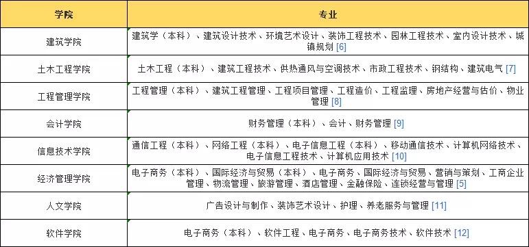 据2016年9月学校官网显示,学校开设8个二级学院,开办10个本科专业、40个专科专业。