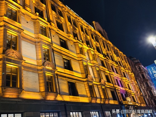 顺着南京东路的话,可以路过和平饭店,这是我最喜欢的酒店之一,只不过现在已经属于费尔蒙旗下了。相信这个酒店不用我多说,无论你知不知道他的历史,也熟悉这个名字,1995年周润发主演过同名电影,陈奕迅也唱过同名歌曲,路边打卡留念的游客众多,对面墙上还有灯光秀,整个酒店灯光外墙会根据音乐的变化而变化,不知道大家发现没有。