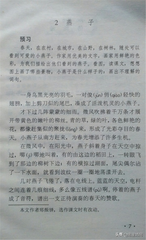 老课文:80后小学课本里的《燕子》其实是改动最大的一个版本