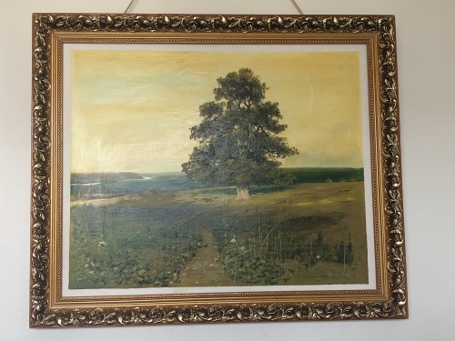 直言不讳这幅油画的情调是大不相同的,摇曳多姿的林木繁木菁林,疏密有致,充满生机。色彩间的冷暖对比、明度变化、色调氛围及用笔的轻重缓急,综合体现出画家的内在精神和情感流露,是构成画面意境的重要组成部分。