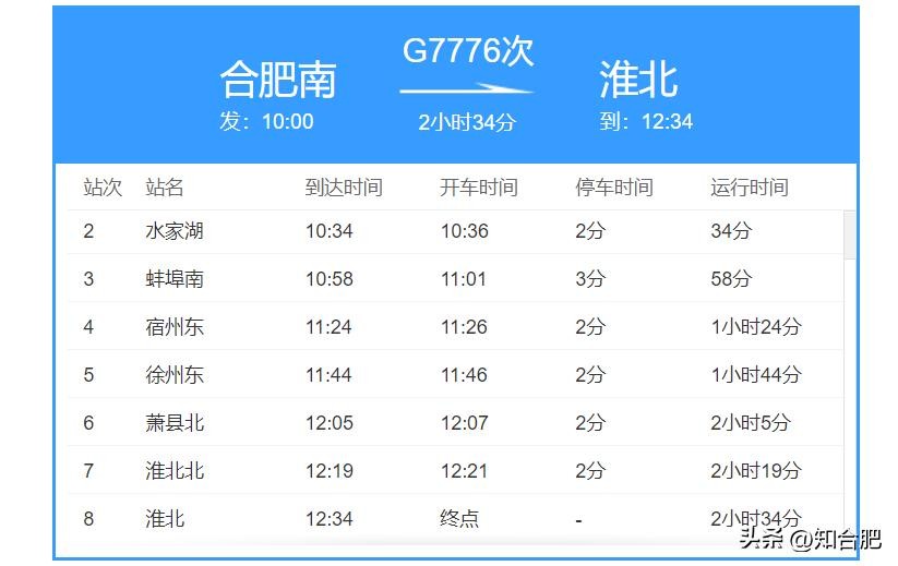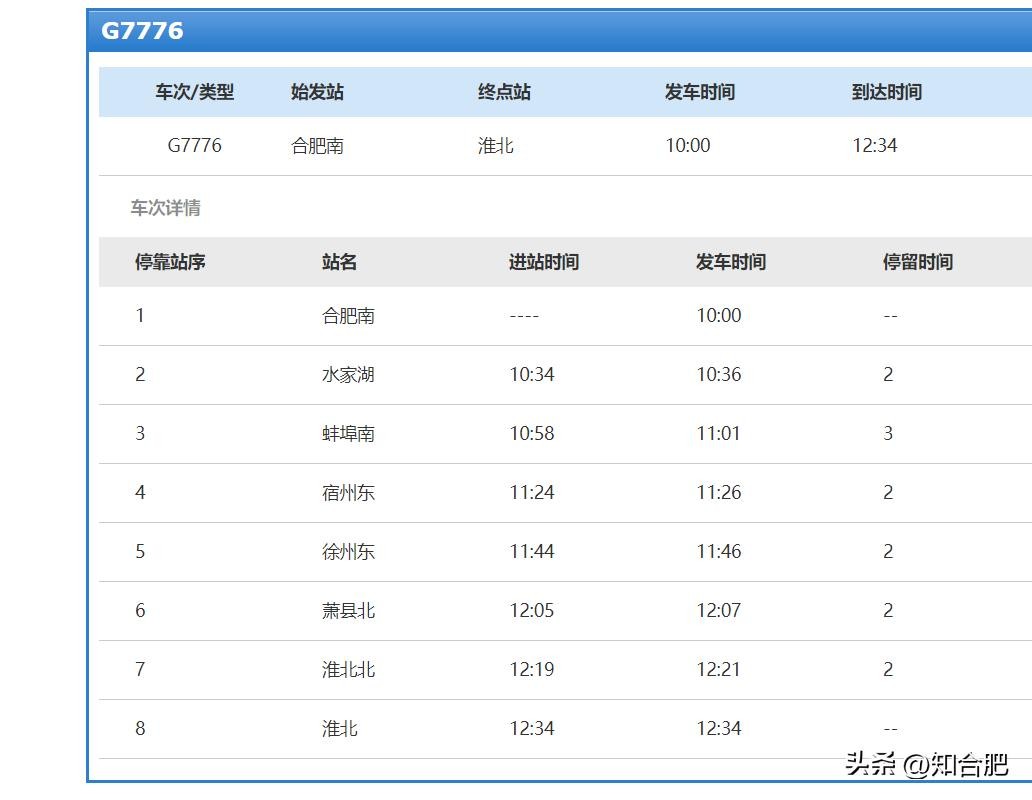 不同的是,G7776次列车,是从合肥南站发车的,而且,倒数第二站,还路过淮北北站!