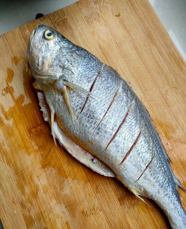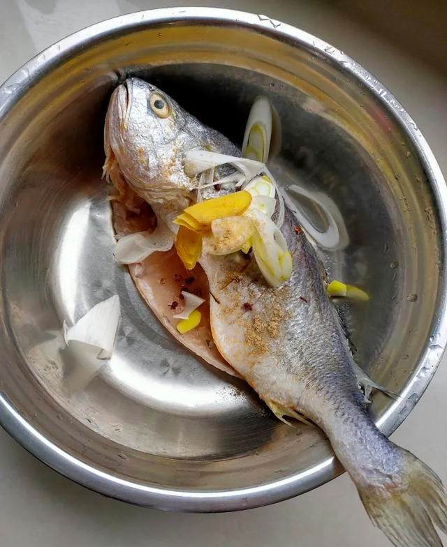 1. 黄花鱼,去内脏洗净,在鱼上面划几刀。