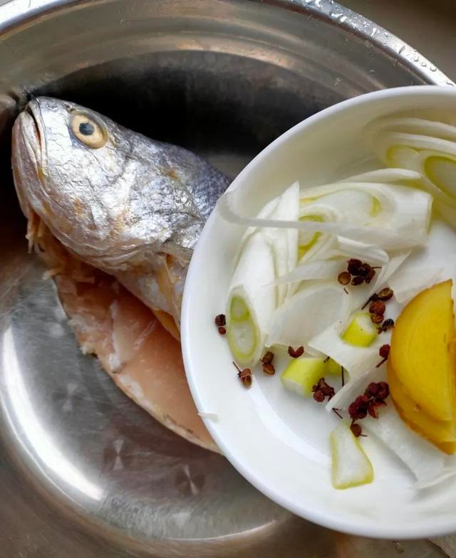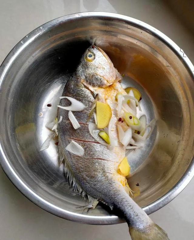 黄花鱼1条 蒸鱼豉油2勺 料酒2勺 花椒适量 葱适量 姜适量 盐适量 胡椒粉适量