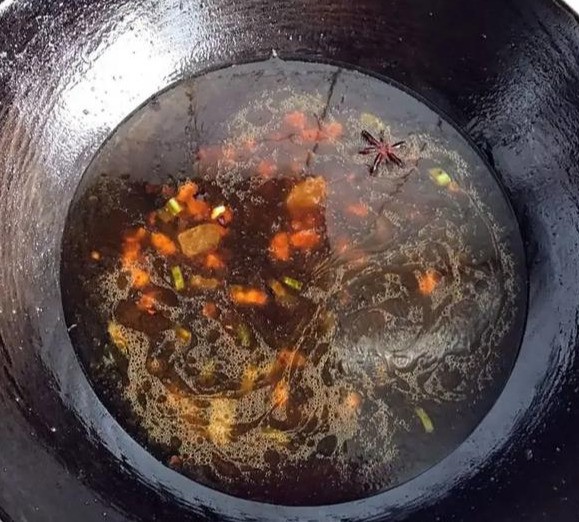 10. 锅中留下的汤汁淋入水淀粉勾成薄芡。