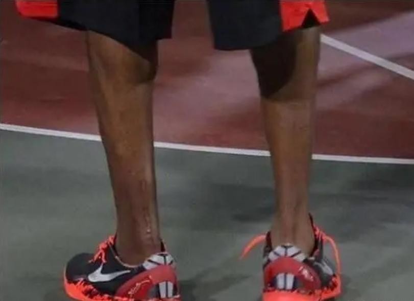 我们正常人的跟腱,或许都没有20厘米,可他的伤病,跟腱的伤疤就有20厘米,这不仅仅证明了科比有着超越常人的天赋,同时,作为一名球员,他也在忍受着各种各样的伤病所带来的痛苦,而这些痛苦,或许有的时候我们都无法忍受,而就在2013年,他的跟腱遭遇了前所未有的伤病,即使是在NBA巡回赛之中,他穿着短裤,我们都可以窥见一二,科比跟腱上的伤疤,着实让人看了都恐怖,更别提经历了