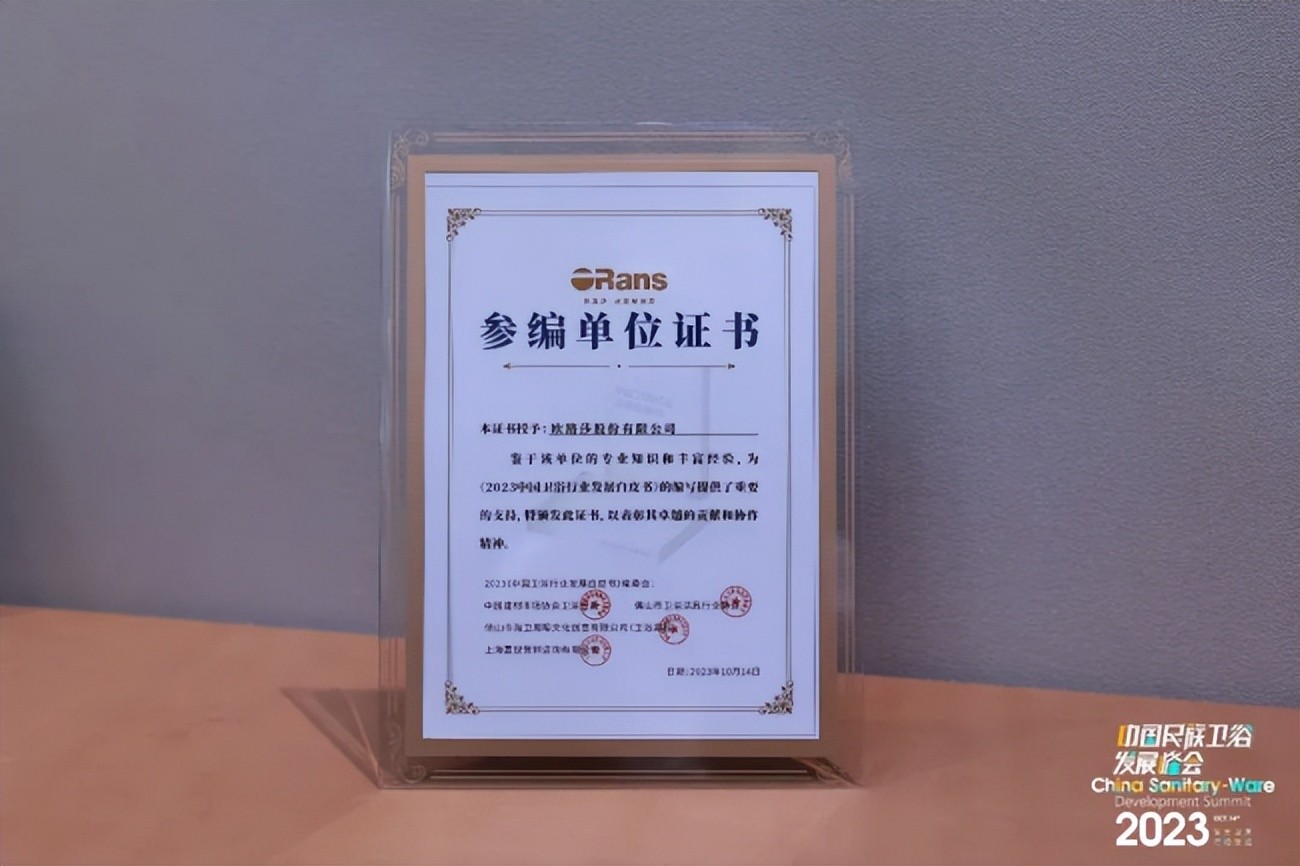 与此同时,欧路莎不光关注自身发展,还积极参与推动国内卫浴行业的发展。欧路莎卫浴为编写《2023 中国卫浴行业发展白皮书》提供了重要支持,并获得了“参编单位证书”。这一举措不仅体现了欧路莎卫浴的专业实力,更是对国货品牌的责任担当的肯定。