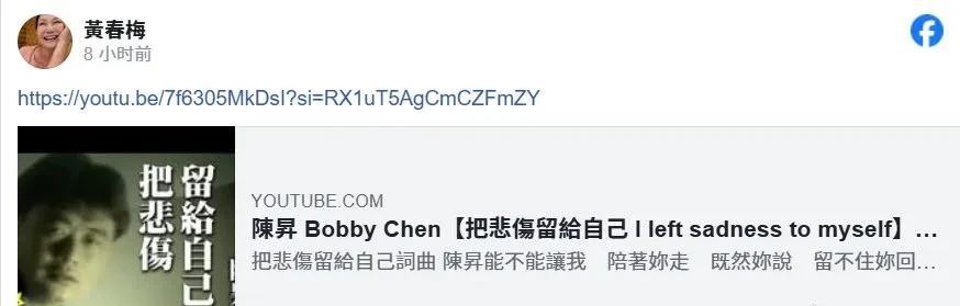 “这首歌就是为我写的”,S妈在社交媒体上分享了陈升的《把悲伤留给自己》,这句评论道出了她此刻的心情。 那种无助和绝望,令人潸然泪下。